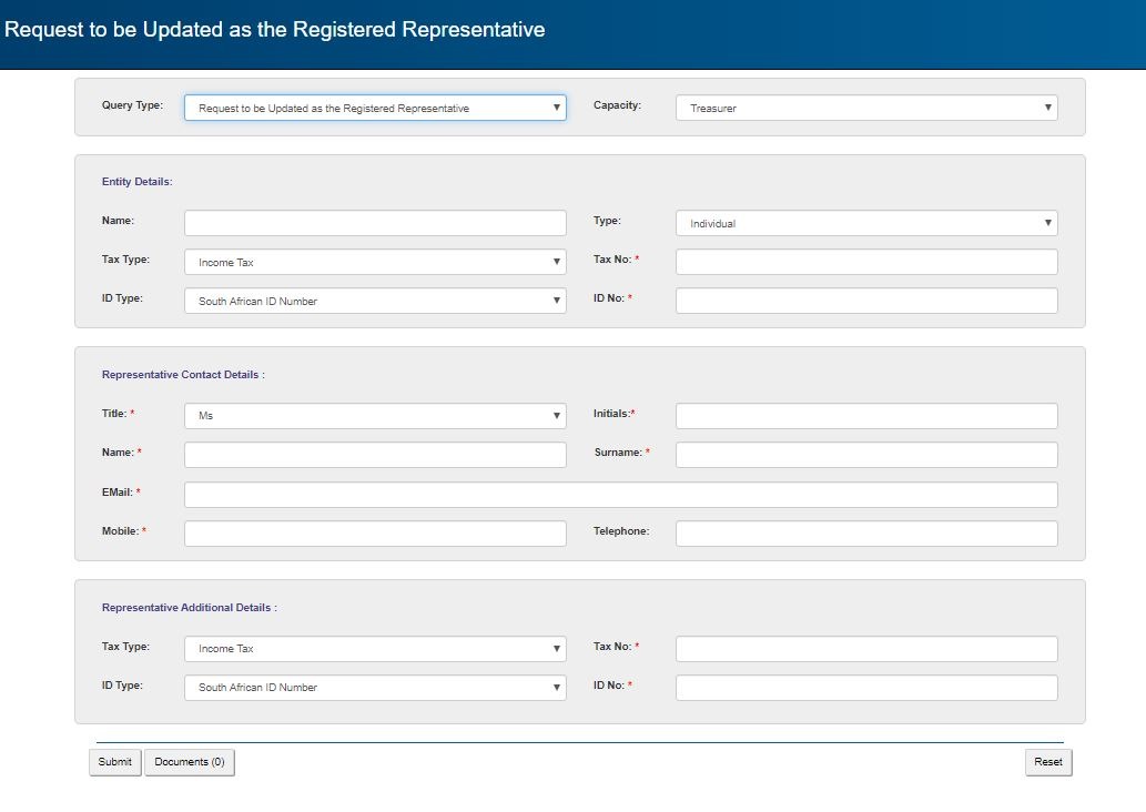 - Registration or update of a Registered Representative can be done on eFiling or the SARS Online Query System (SOQS)