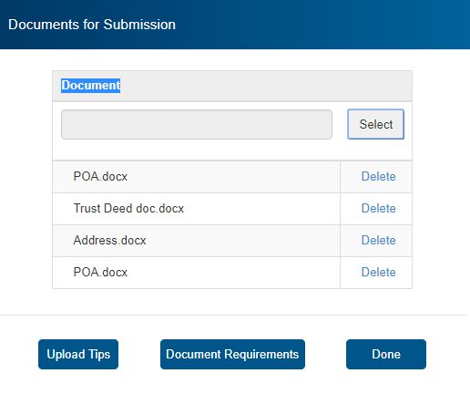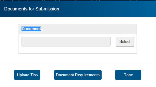 10. Once all documents have been uploaded, select the “Done” tab on the “Documents for Submission” screen.